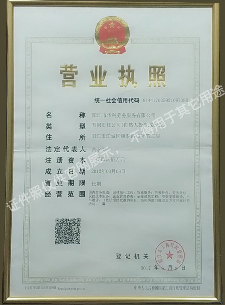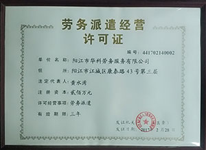 華科勞務服務有限公司是專業(yè)從事人事代理、勞務租賃、人力派遣及管理的綜合性服務機構,是首批獲得廣東省人力資源廳、陽江市勞動和社會保障局頒發(fā)人力資源許可證的合法單位。公司秉承“誠信務實、專業(yè)熱情、滿意第一、服務社群”的經營理念,在勞務派遣業(yè)務的基礎上,更致力于合同制工人(臨時工、實習生、假期工)方向發(fā)展,為用工企業(yè)及時輸送合格的各類人才,合理調配人力資源的有序流動,幫助求職者尋求更加滿意的就業(yè)渠道和崗位,切實維護求職者的合法權益。